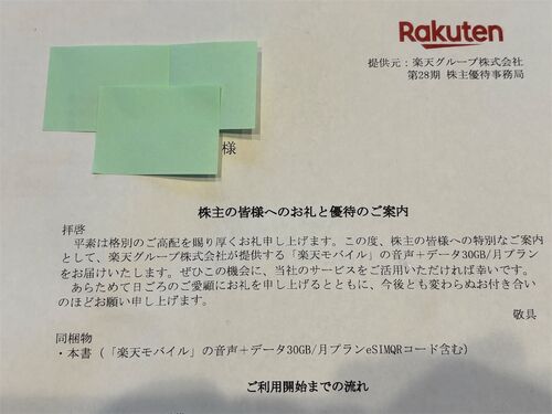 楽天の株主優待優待SIMが来た!こんにちはアズキングです!今日は楽天グループから株主優待優待のSIMが届いたので紹介します。去年11月くらいに楽天グループの株を100株購入して持っていました。とりあえず、12月27日まで持っていれば株主優待制度で1年間電…