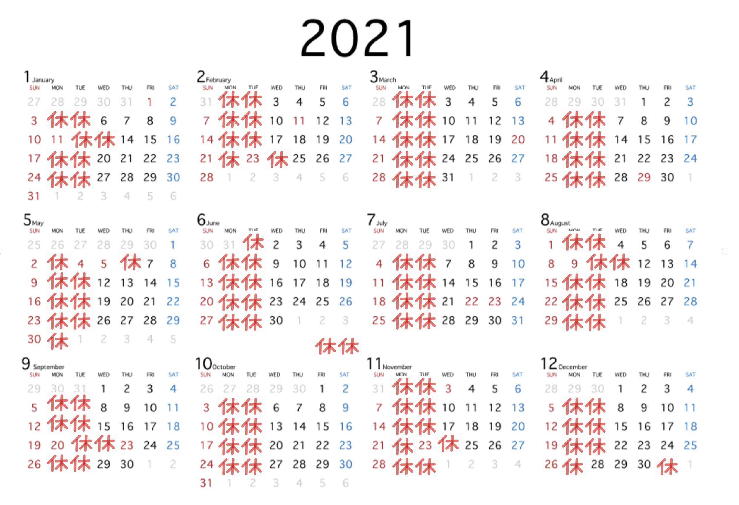 定休日はお店からTwitterで年間スケジュールを紹介してくれています。